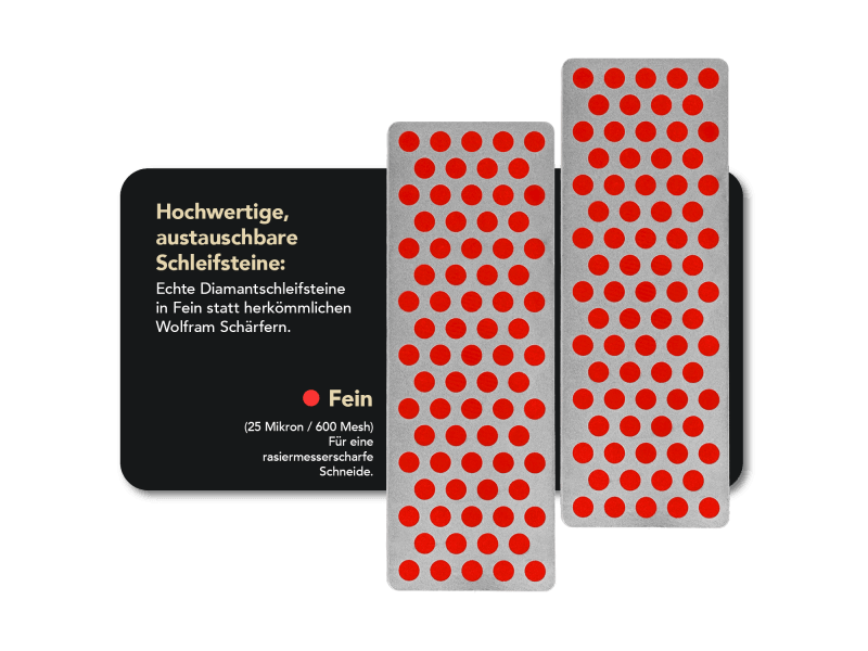 - Feine Diamant-Körnung für rasiermesserscharfe Klingen