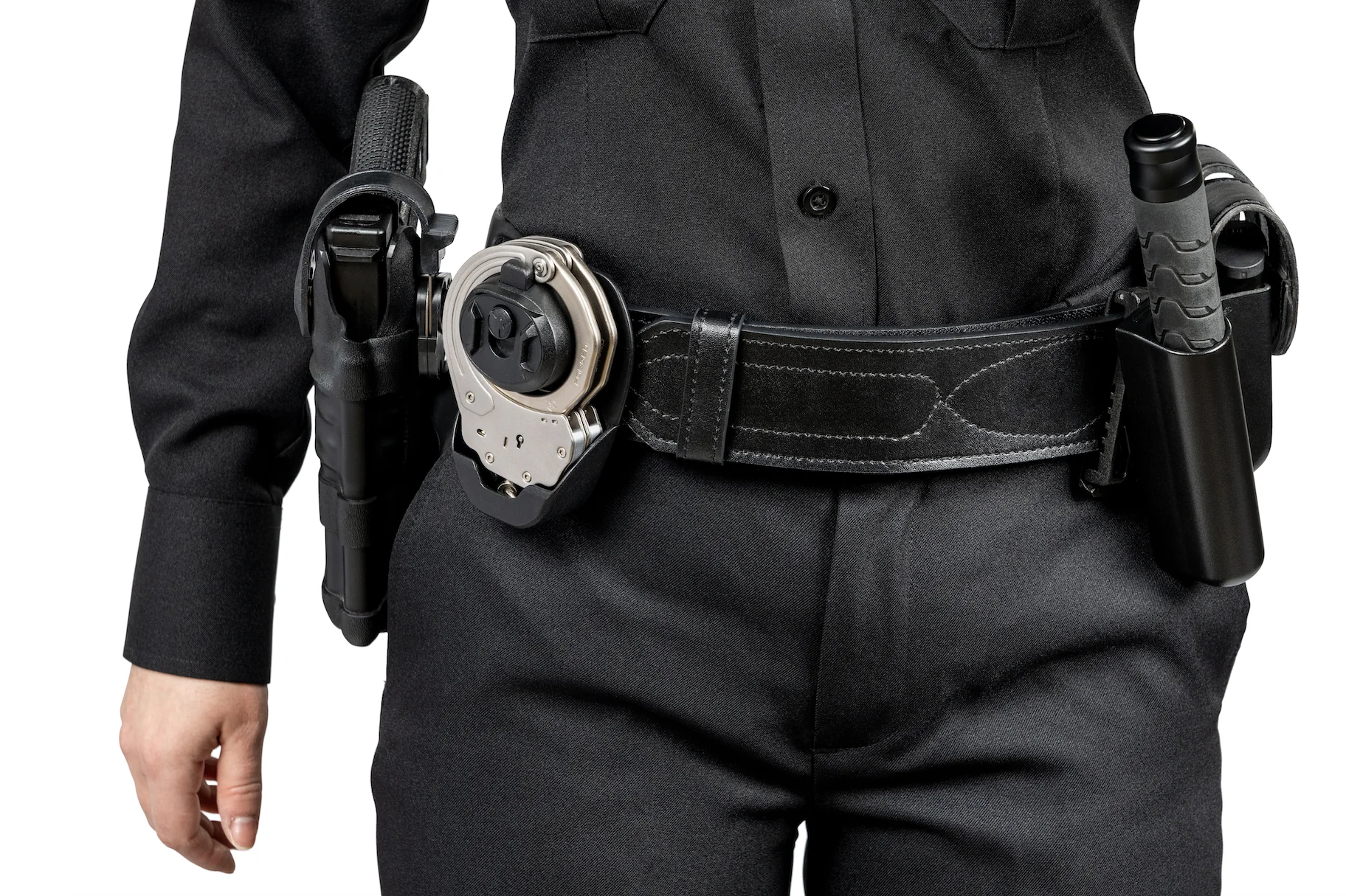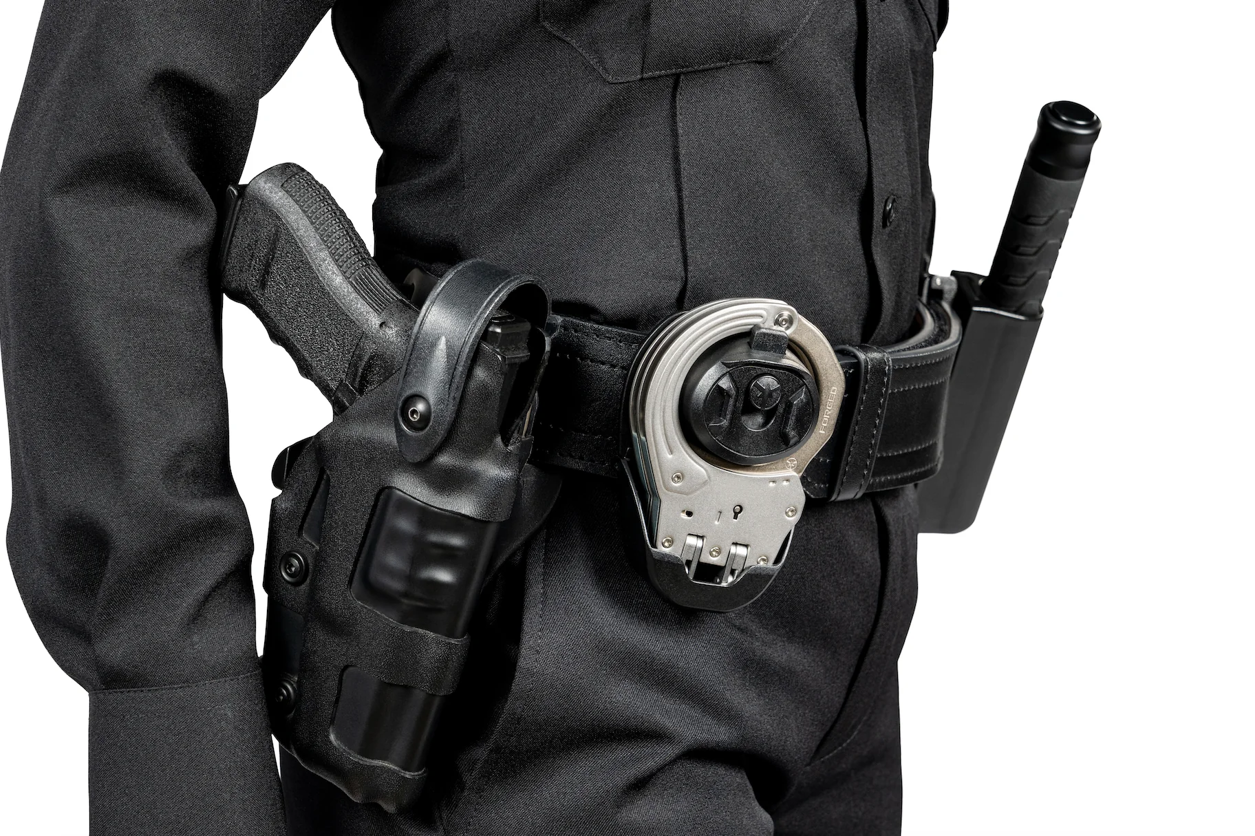 Für die Befestigung am Gürtel ist das Exo-S Case ist mit der exklusiven ASP Snap-Loc-Gürtelschlaufe ausgestattet, die sich an jeder beliebigen Stelle des Gürtels befestigen lässt, ohne dass andere Dienstausrüstung ein- oder ausgefädelt muss. Sie verfügt über eine indexierte Gleitschiene und -leiste, die sich an alle gängigen Dienst- und Bekleidungsgürtelbreiten oder MOLLE-Ausrüstung anpassen lässt. Ein Ersatz-Handschellenschlüssel (im Lieferumfang enthalten) wird in einem eigenen Fach auf der Rückseite aufbewahrt.