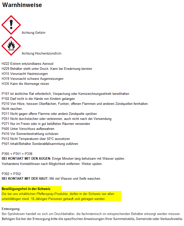 Das Pfefferspray ist mit einer hochwertigen Federdeckelsicherung ausgestattet, welche das unbeabsichtigte Auslösen des Sprays verhindert: Durch das intelligente System mit federunterstütztem Klapp-Deckel wird der Sprühkopf vor Druckeinwirkung gesichert. Beim Betätigen der Auslösetaste schieben Sie mit dem Daumen den Deckel nach oben. Der Deckel klappt anschliessend selbsttätig wieder nach unten.