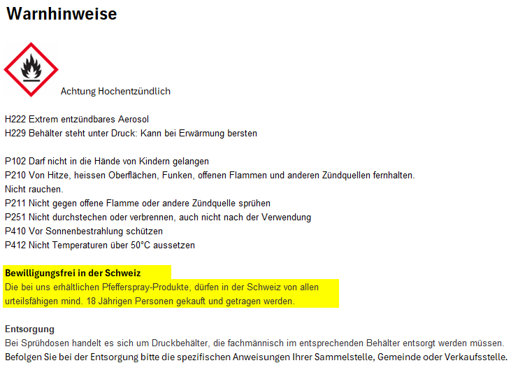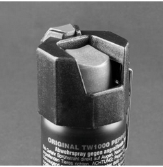 Auf Grund der speziellen Form der Schutzkappe ist das Abwehrspray gegen unbeabsichtigtes Auslösen und Selbstansprühen gesichert.