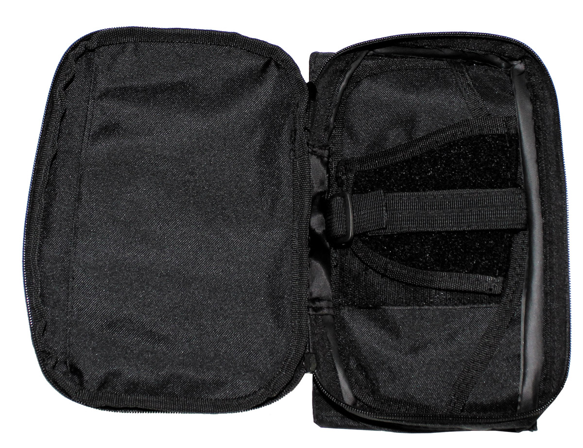 verstellbarer Hüftgurt mit Klickverschluss je 1 Einschubtasche mit Reissverschluss seitlich 2 Gürtelschlaufen mit Druckknopf hinten für Gürtel bis ca. 6 cm 1 komplett aufklappbares Hauptfach mit 2-Wege Reissverschluss und 1 abnehmbaren Pistolenhalterung mit Klett sowie 1 Einschubfach mit 2 Elastikschlaufen 1 aufgesetzte Tasche mit Reissverschluss vorne Masse: ca. 25 x 15 x 7 cm (B x H x T) Masse Hauptfach: ca. 25 x 15 x 4 cm (B x H x T) Gewicht: ca. 340 g
