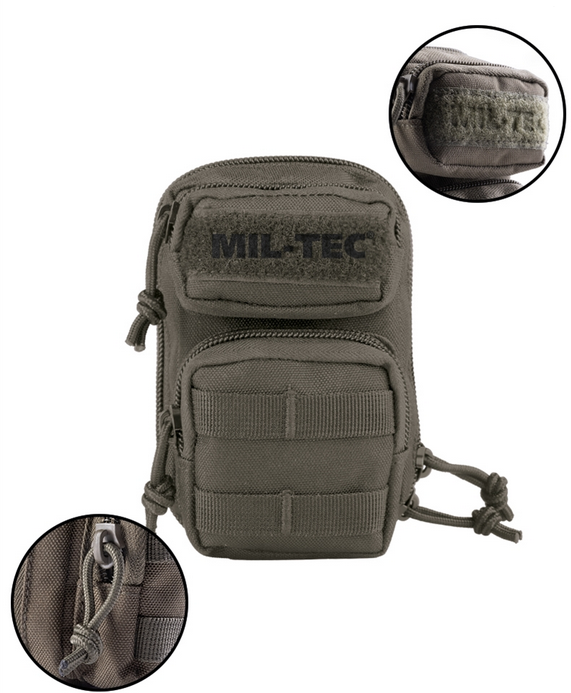 - Mini- Assault Pack als Schlüsselanhänger - 3 kleine Fächer mit Reißverschluss, ideal für Geld, Schlüssel und andere kleine Gegenstände - Robuster Karabiner ermöglich leichte Befestigung - Frontseite mit Klett und Mil-Tec Logo