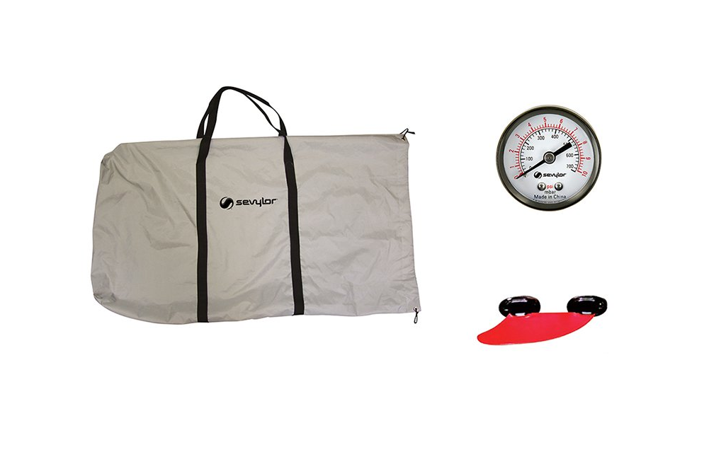 Mitgeliefertes Zubehör: Tragetasche, Manometer (Mano 4BW), abnehmbare Finne