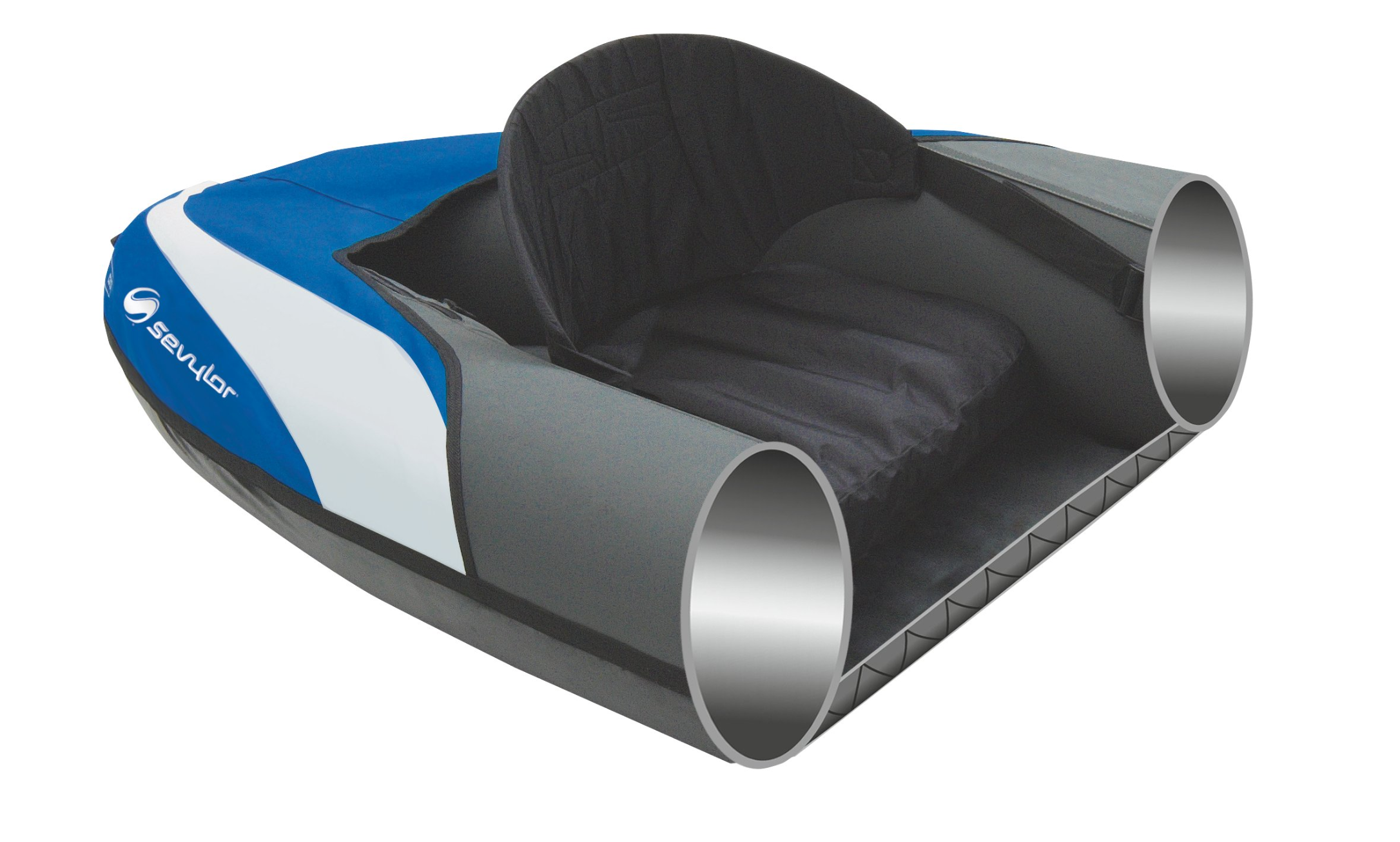 - 3 stoffbezogene, verstellbare Sitze mit hohen Rückenlehnen und aufblasbarer Sitzfläche