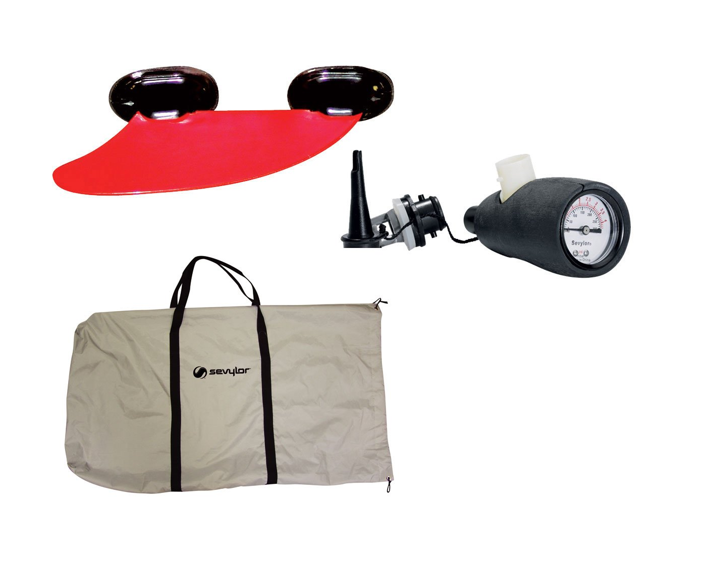 Mitgeliefertes Zubehör: Tragetasche, Easy Inflation Manometer, abnehmbare Flosse, Bedienungsanleitung