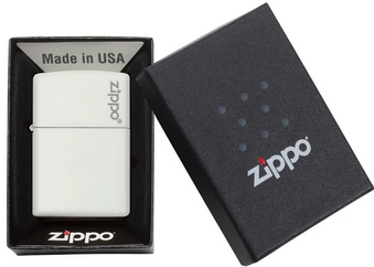 Dieses weiße, matte, windfeste Feuerzeug ist mit dem klassischen Zippo-Logo geschmückt. Es wird in einer Geschenkverpackung geliefert. Für optimale Leistung mit Zippo-Feuerzeugbenzin befüllen.