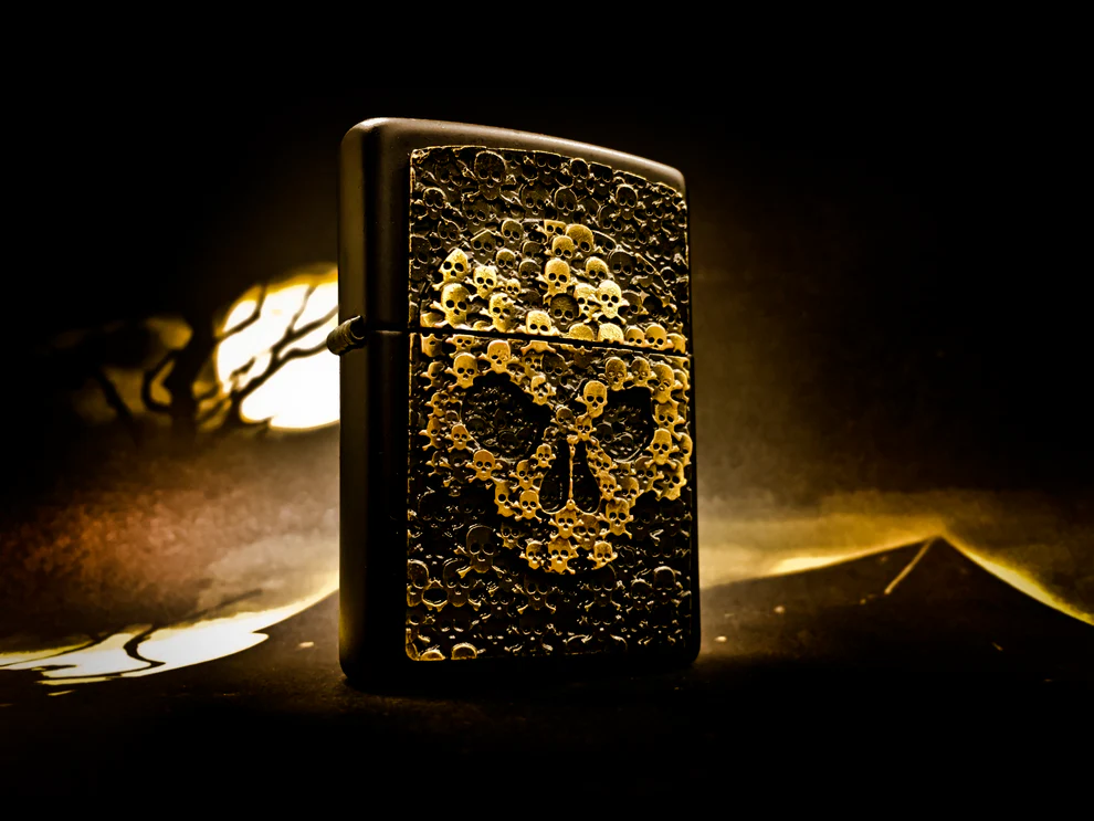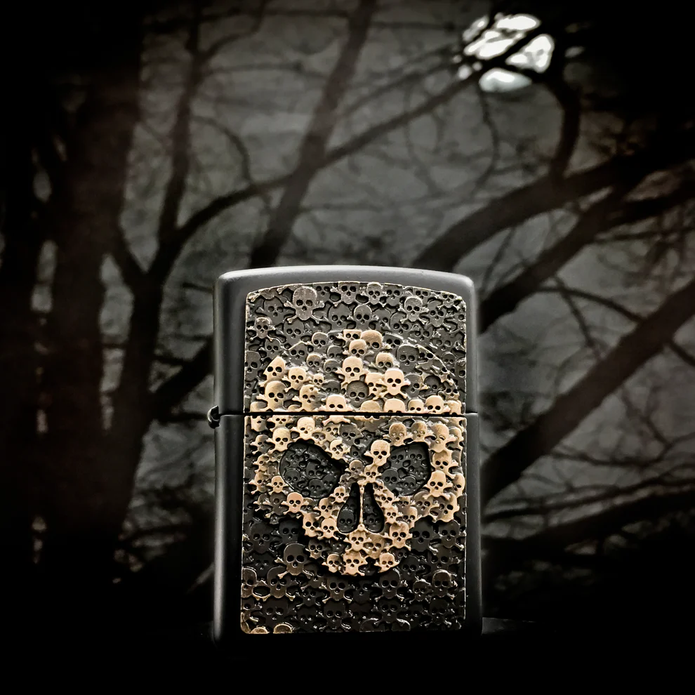 Totenkopf bestehend aus vielen kleinen Totenköpfen. Black Matte Emblem Garantie Zippo ⦁ Echtes... mehr