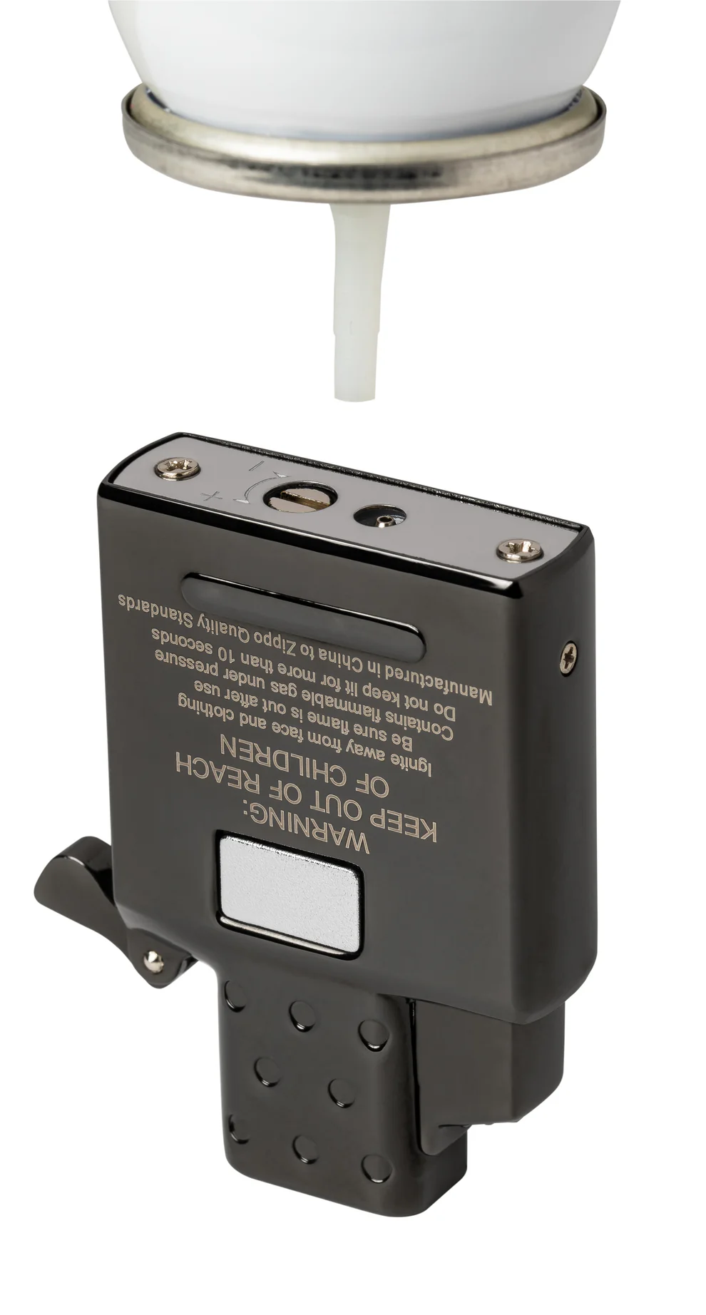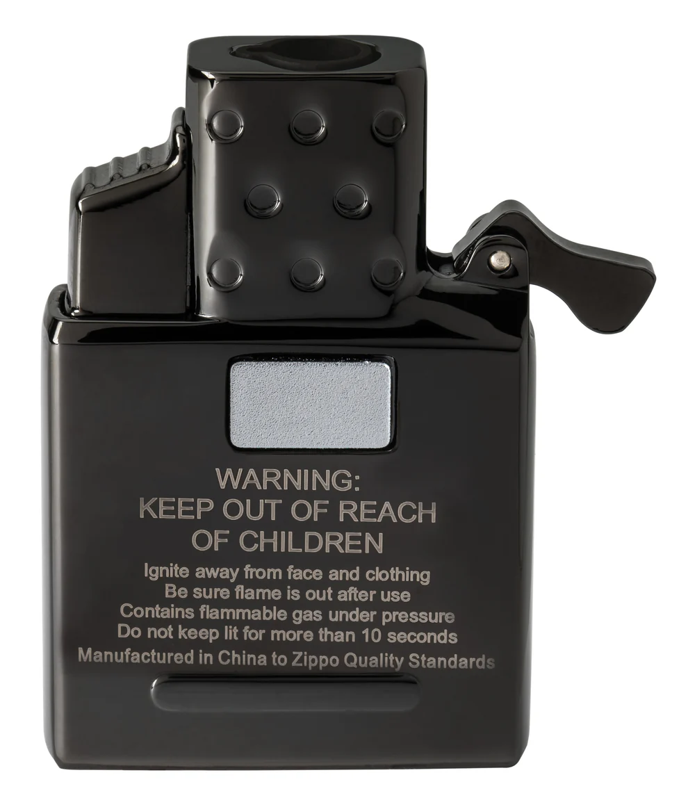 Gehen Sie bei der individuellen Gestaltung noch einen Schritt weiter – mit unserem beliebten Butangas-Einzeleinsatz, der jetzt in eleganter schwarzer Ausführung erhältlich ist. Die einstellbare blaue Flamme im Fackelstil lässt sich per Knopfdruck aktivieren und bereichert jede Zippo Kollektion. Geeignet für alle klassischen Zippo Gehäuse (separat erhältlich). Für optimale Leistung mit Zippo Butangas befüllen.