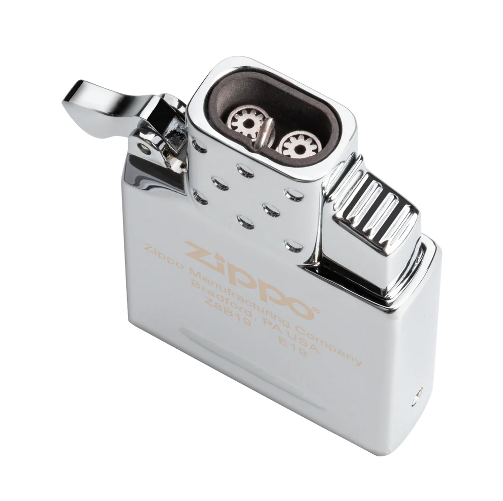 - Echter Zippo Doppelbrenner-Einsatz; Piezo-Zündung mit Druckknopf