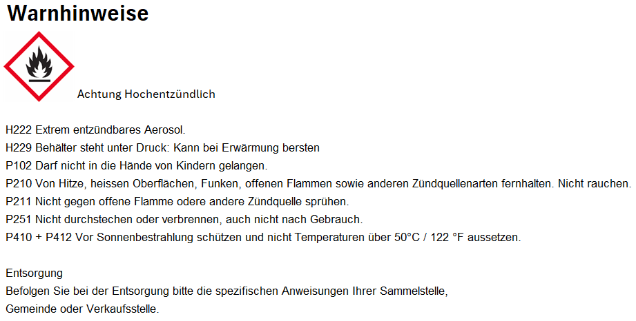 Hinweis: Nicht in windfesten Feuerzeugen oder Handwärmern verwenden.
