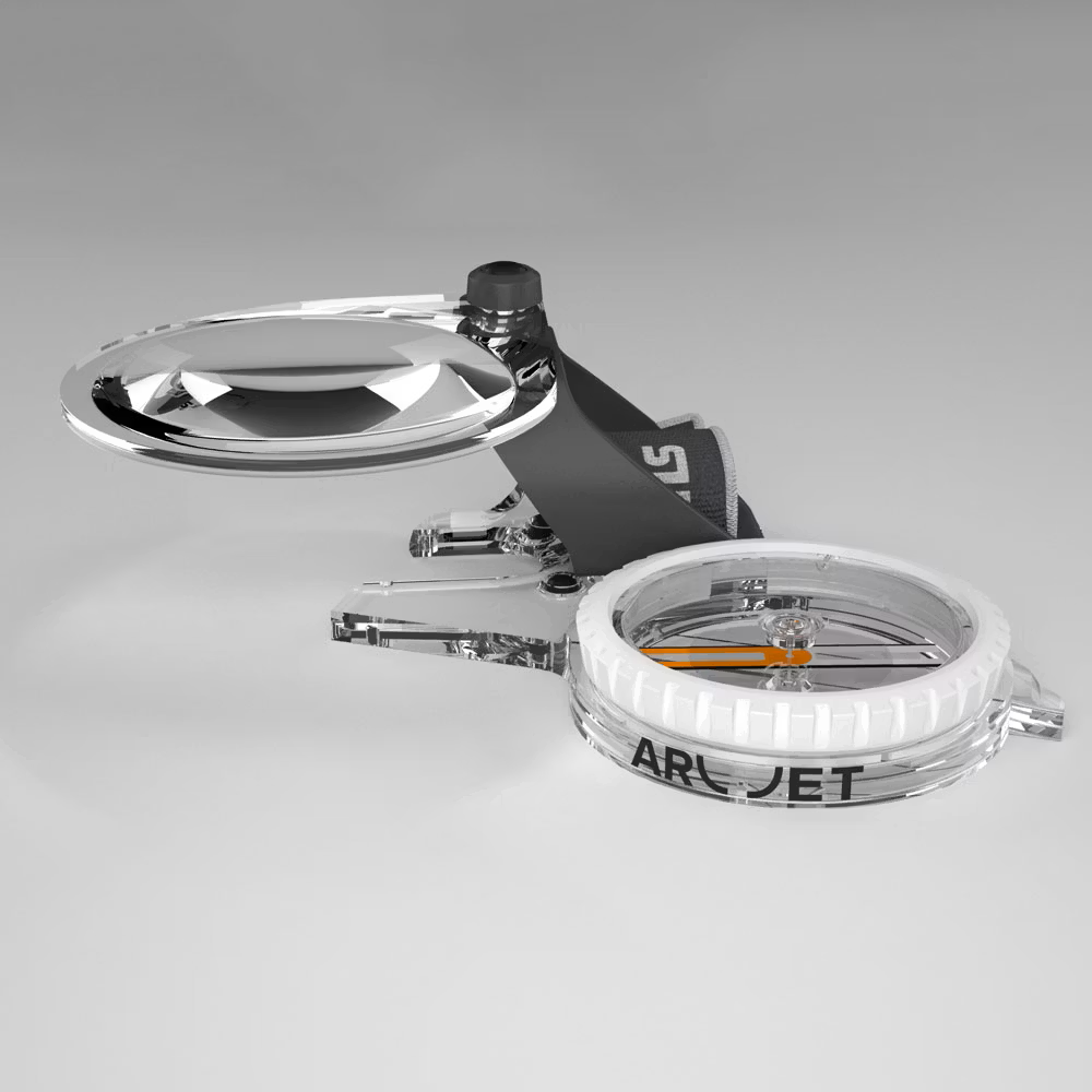 Für noch schnelleres und exakteres Kartenlesen lässt sich der Arc Jet S mit der optionalen Arc Zoom-Lupe kombinieren. Sie wird einfach an der Grundplatte befestigt und fügt sich nahtlos in das Kompassdesign ein – ideal, wenn jedes Detail zählt.