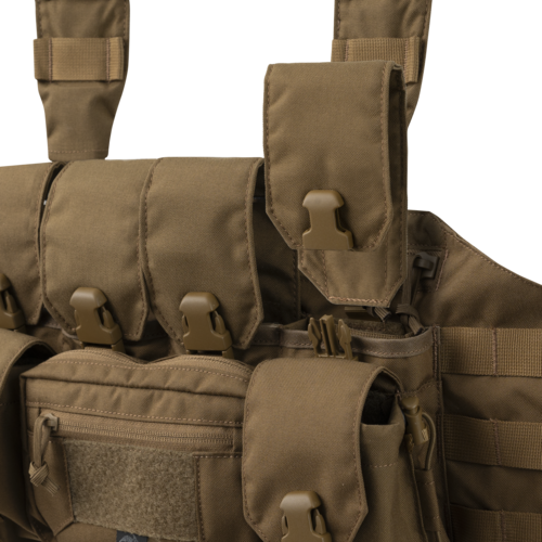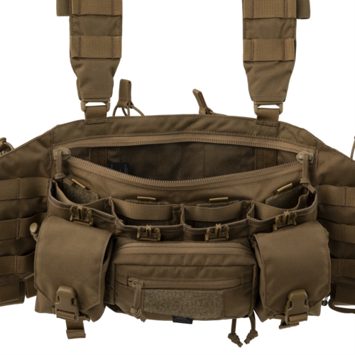 Das Helikon-Tex Guardian Recce Chest Rig ist ein leichtes und vielseitiges Chest Rig, das für taktische Einsätze und Outdoor-Aktivitäten konzipiert wurde. Es verfügt über vier Magazintaschen, die mit AR/AK-Magazinen kompatibel sind, sowie zusätzlichen Stauraum für kleine Ausrüstungsgegenstände wie Werkzeuge, Karten, Funkgeräte und andere Ausrüstung. Das MOLLE-Webbing auf beiden Seiten ermöglicht weitere Anpassungen. Die verstellbaren Schulter- und Hüftgurte sorgen für eine bequeme Passform und ermöglichen es Ihnen, das Chestrig allein oder über einem Plattenträger zu tragen. Das Guardian Recce Chest Rig ist ideal für Reconnaissance-Loadouts und ermöglicht einfachen Zugriff auf die wichtige Ausrüstung in dynamischen Situationen.