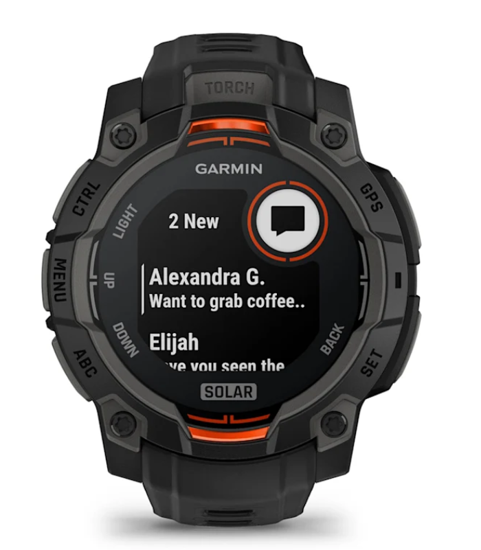Erhalte Nachrichten, Emails und Alarme direkt auf der Instinct 3, wenn sie mit deinem Smartphone gekoppelt ist. Mit Funktionen wie Garmin Pay™ und Sicherheitsfeatures bleibst du nicht nur informiert, sondern auch geschützt. (Smartphone-Kopplung erforderlich. Funktionen können je nach Region und Kompatibilität variieren.)