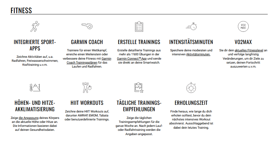 - Integrierte Sport-Apps: Vom Radfahren bis zum Freiwasserschwimmen – tracke alles.
