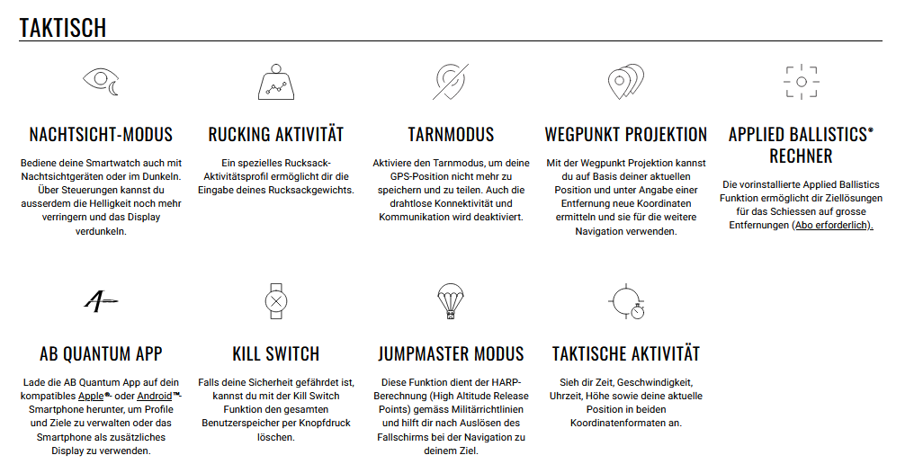 Ballistikrechner | Ja (Freischaltung erforderlich) |