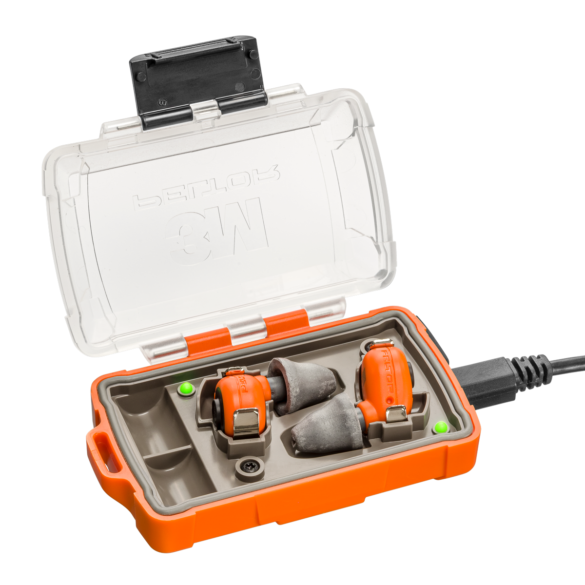Die 3M™ PELTOR™ Elektronischen Gehörschutzstöpsel schützen Ihr Gehör und tragen gleichzeitig dazu bei, Situationsbewusstsein und Kommunikation in lärmbelasteten Umgebungen zu verbessern. Die Gehörschutzstöpsel sind über einen USB-Stecker an der Ladebox wiederaufladbar. Die Ladebox bietet auch eine praktische Aufbewahrungsmöglichkeit, wenn die Stöpsel nicht in Gebrauch sind. Das kleine, leichtgewichtige Design trägt zu höherem Komfort bei und verbessert so die Trageakzeptanz für den Nutzer. Darüber hinaus sind die Gehörschutzstöpsel kompatibel mit einem Grossteil der am Kopf getragenen persönlichen Schutzausrüstung von 3M wie Helmen und Schutzvisieren.