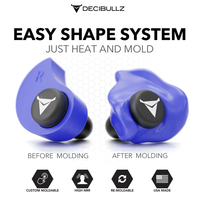 Erhitzen Sie die Decibullz thermoplastischen Formen einfach in kochendem Wasser, lassen Sie sie abkühlen und formen Sie sie an Ihre Ohren an. So einfach ist das. Wenn sie nicht auf Anhieb perfekt sitzen, ist das kein Problem. Decibullz sind die einzigen maßgefertigten Ohrstöpsel, die wiederverformbar sind. Decibullz Custom Molded Earplugs sind perfekt für Schießsport, Reisen, Schwimmen, laute Konzerte und Musiker.