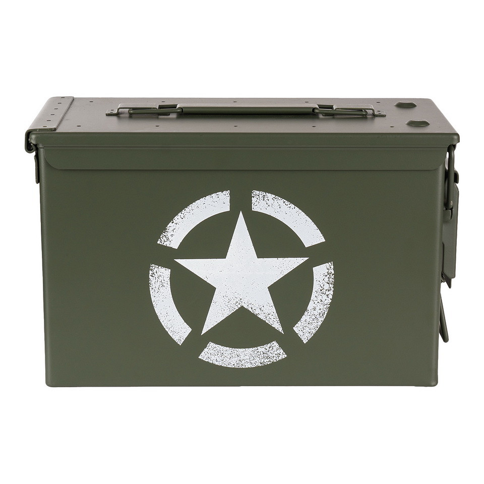 Entdecken Sie unsere 50 Cal. Munitionskiste - US Army Star, eine Munitionskiste in einzigartigem Militärstil. Perfekt zur Aufbewahrung von Airsoft-Ausrüstung, Munition, Angelausrüstung, Elektronik, Kamera-Equipment und mehr!