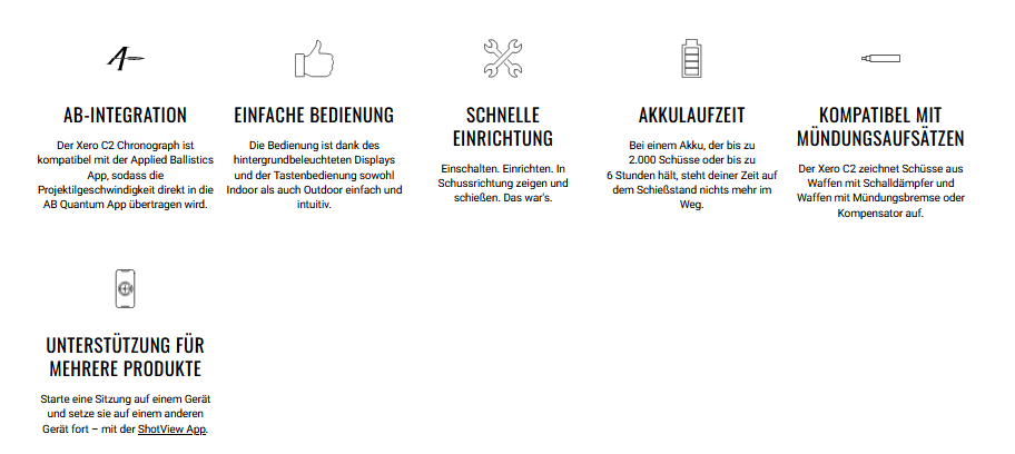 | Notizen zu einzelnen Schüssen hinzufügen | Ja (ShotView™ app) |