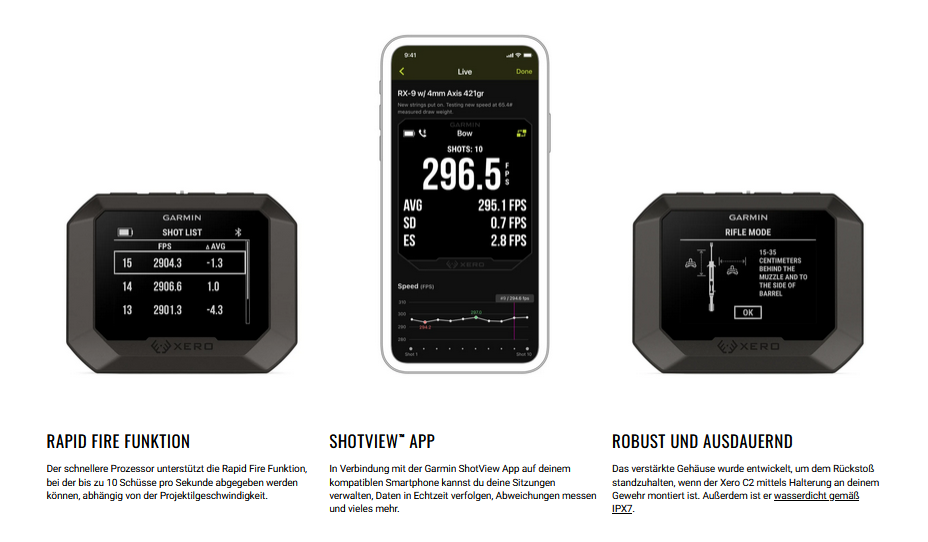 Der Xero® C2 Chronograph setzt neue Maßstäbe in Sachen Geschwindigkeit, Präzision und Bedienkomfort. Aufbauend auf den bewährten Stärken seines Vorgängers überzeugt der C2 mit einem noch schnelleren Prozessor, optimierten Funktionen und einem besonders kompakten Design – für ein einzigartiges Trainingserlebnis auf dem Schießstand.