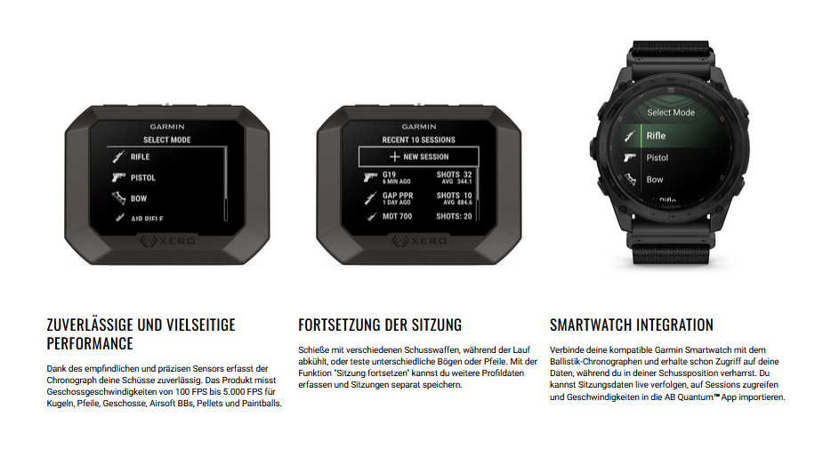 | Aufzeichnung bei Gewehren bis zu 1524 m/s / 5000 ft/s | ✓ |