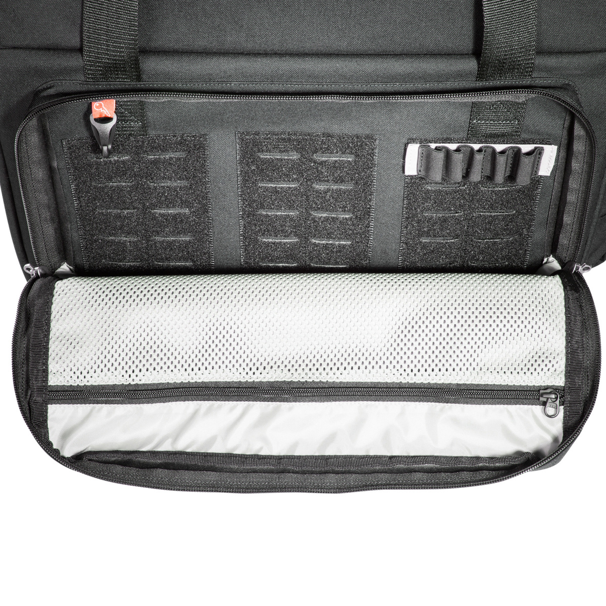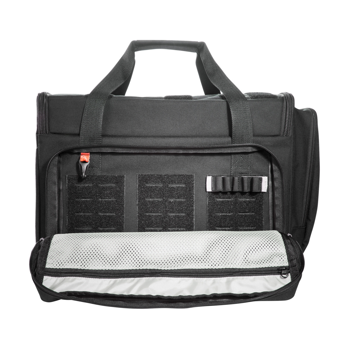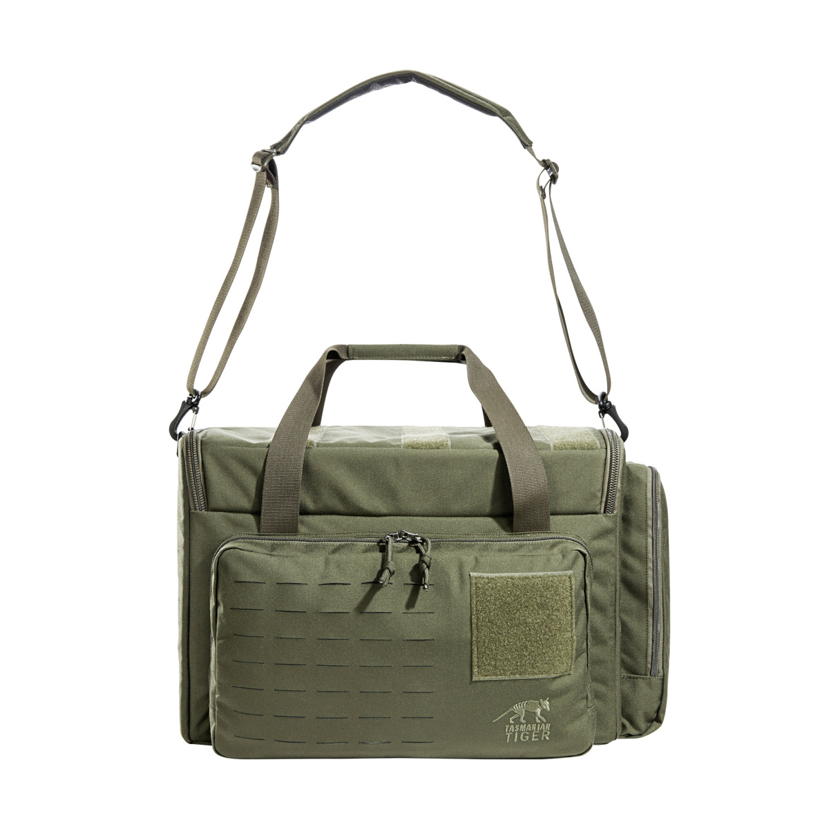 Die TT Modular Range Bag besitzt eine verstell- und ausklettbare Inneneinteilung sowie abklettbare Magazin- und herausnehmbare Innentaschen für Munition und Zubehör. Eine grosszügige Außentasche ist mit Molle-Klett und weiteren Verstaumöglichkeiten ausgestattet. Zudem stehen drei weitere Aussenfächer sowie ein Deckelfach zur Verfügung. Die Hauptfächer der Tasche sind mit abschliessbaren Reissverschluss-Schiebern versehen.