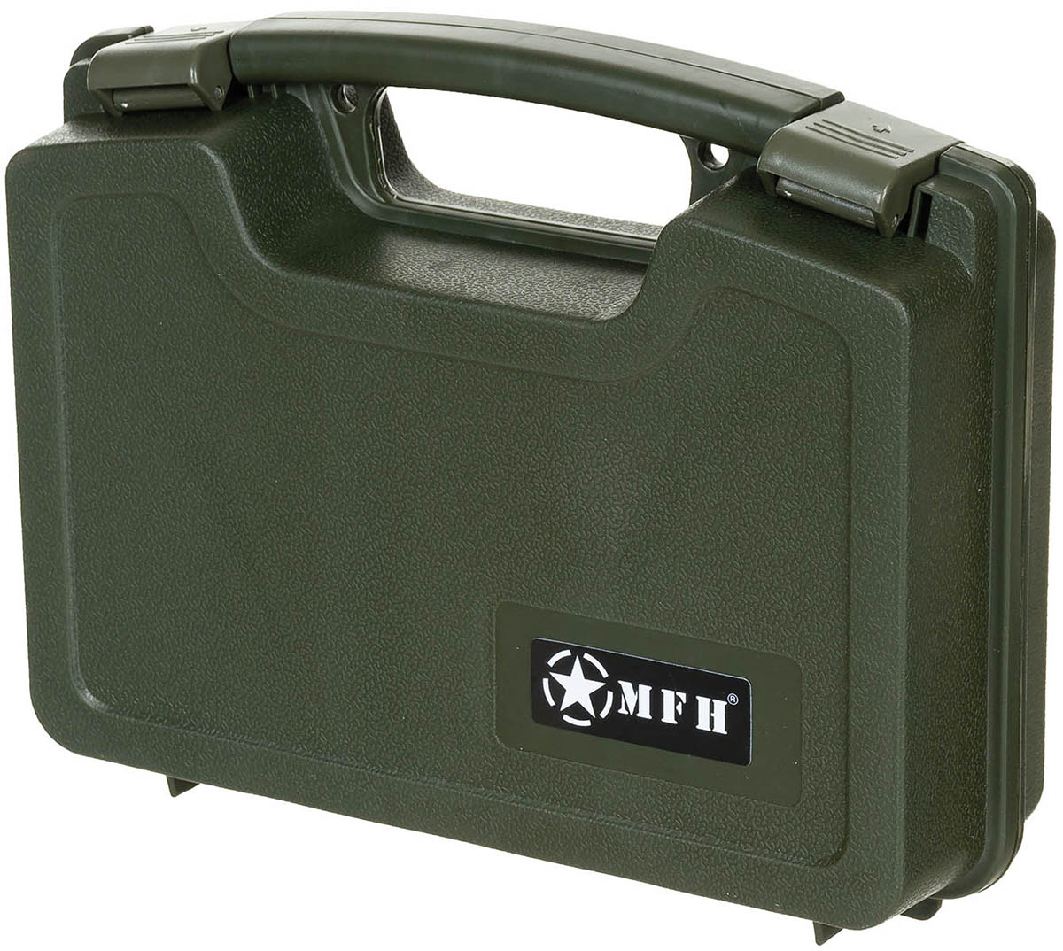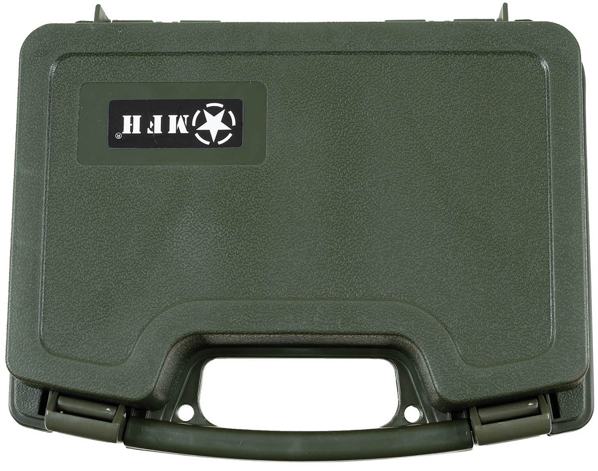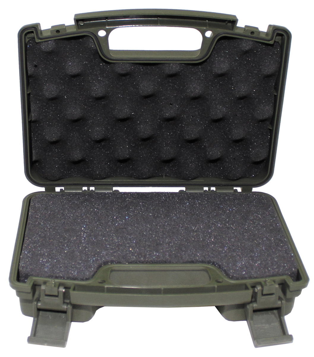 schlagfester Kunststoff 2 Schnappverschlüsse Tragegriff 2 Absperrösen Deckel mit Schaumstoffpolsterung und Gummidichtung spritzwassergeschützt mehrlagiger Schaumstoffeinsatz teilweise mit Würfelrasterung ca. 1,5 x 1,5 cm Aussenmasse: ca. 26,5 x 21 x 8 cm Innenmasse: ca. 25 x 14 x 7 cm Gewicht: ca. 440 g