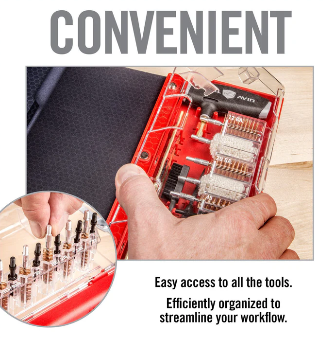Die Master Cleaning Station – Universal Gun – eine revolutionäre All-in-One-Lösung, die Ihre Waffenpflege grundlegend verbessert. Kompatibel mit einer Vielzahl von Schusswaffen, einschließlich Pistolen, Gewehren und Schrotflinten, bietet diese vielseitige Reinigungsstation ein umfassendes Reinigungskit mit ergonomischen Multifunktions-T-Griffen, langlebigen Messingstäben und speziellen Bürsten für eine gründliche Reinigung. Die integrierte Reinigungsmatte schafft eine großzügige und sichere Arbeitsfläche, während das auslaufsichere und stoßfeste Gehäuse alle Werkzeuge ordentlich und leicht zugänglich aufbewahrt. Kompakt und tragbar ist die Master Cleaning Station der ideale Begleiter für Waffenbesitzer, die ihre Reinigungsroutine vereinfachen und ihre Schusswaffen in einwandfreiem Zustand halten möchten.