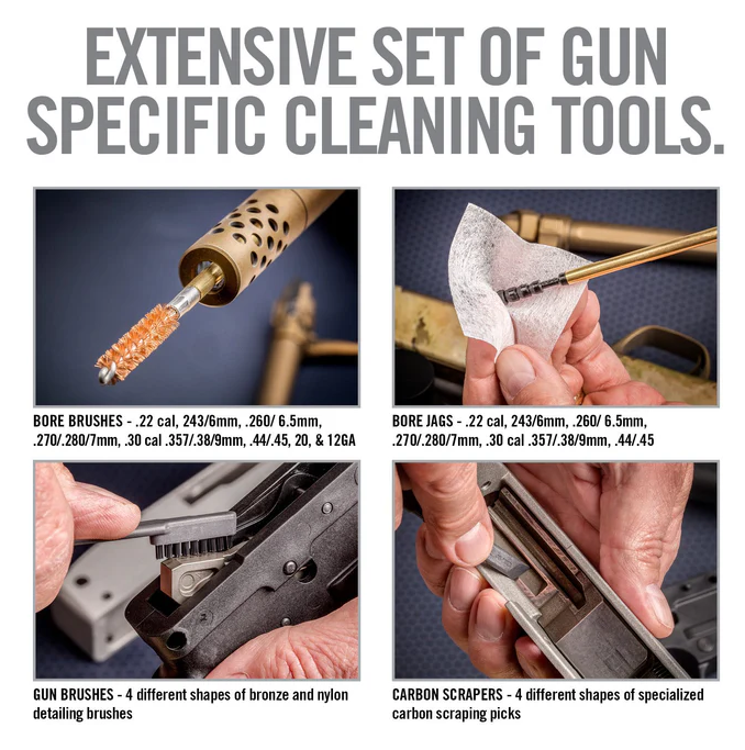 - Umfassendes, professionelles Reinigungssystem für Gewehre, Pistolen und Schrotflinten