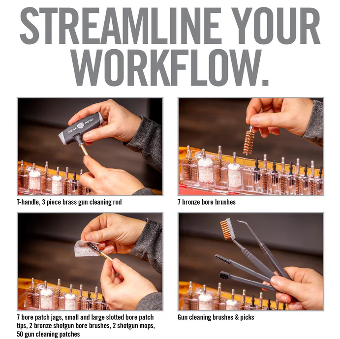 - Accu-Grip™ Reinigungs-Picks und Smart Brush® Reinigungsbürsten – speziell für Waffen entwickelt