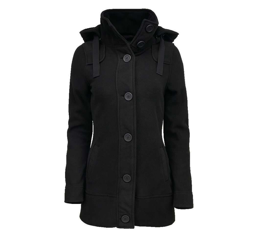 zeitlose, modische Fleecejacke für Damen / hautfreundliches, unkompliziertes Fleecematerial (250g je m²) / kuschelige Kapuze mit Tunnelzug / Kapuze per Reißverschluss abtrennbar / Knopfverschluss / zwei seitliche Einschubtaschen / Rückenriegel / dezentes Logolabel