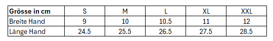 Länge Hand | 24.5 | 25.5 | 26.5 | 27.5 | 28.5 |