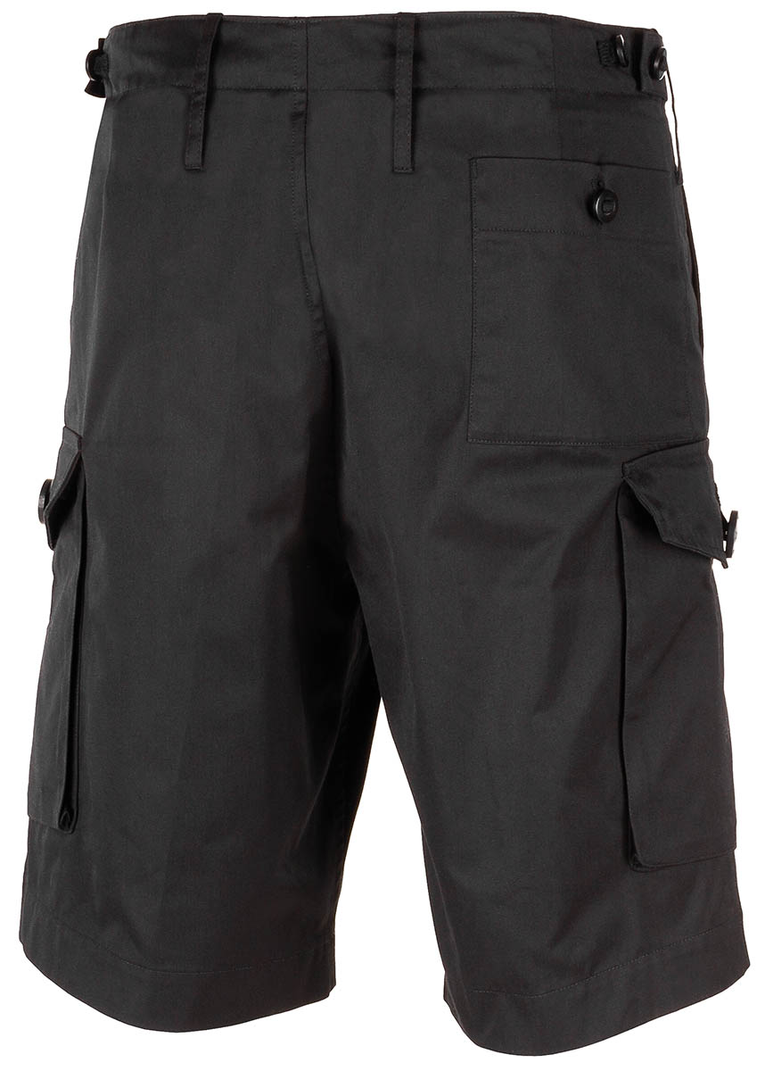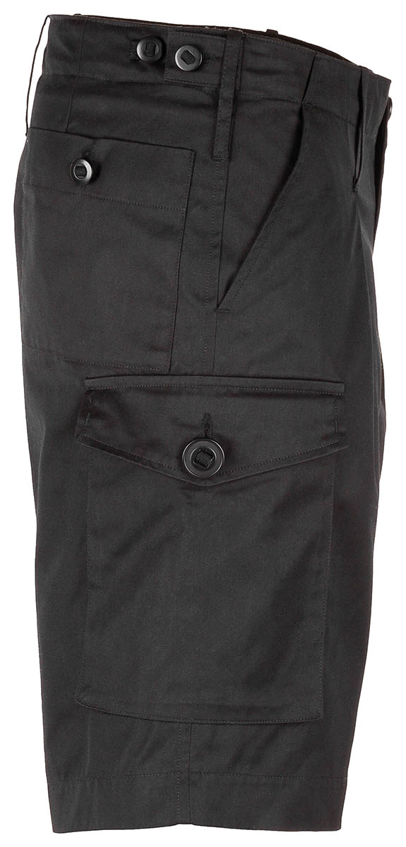 Nachbau der britischen Bermuda verdeckter Front-Reissverschluss 2 seitliche Einschubtaschen 1 Gesässtasche mit Knopf 2 seitlich aufgesetzte Beintaschen mit Patte und Knopf zweifach verstellbare Taillenweite: aussen durch Knöpfe innen durch Stoffband extra lange Gürtelschlaufen (ca. 9 cm) alle Knöpfe mit Stoffband angenäht