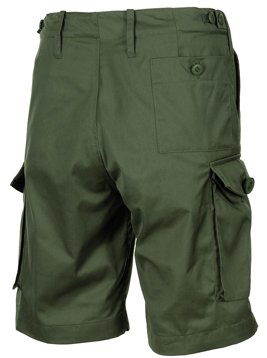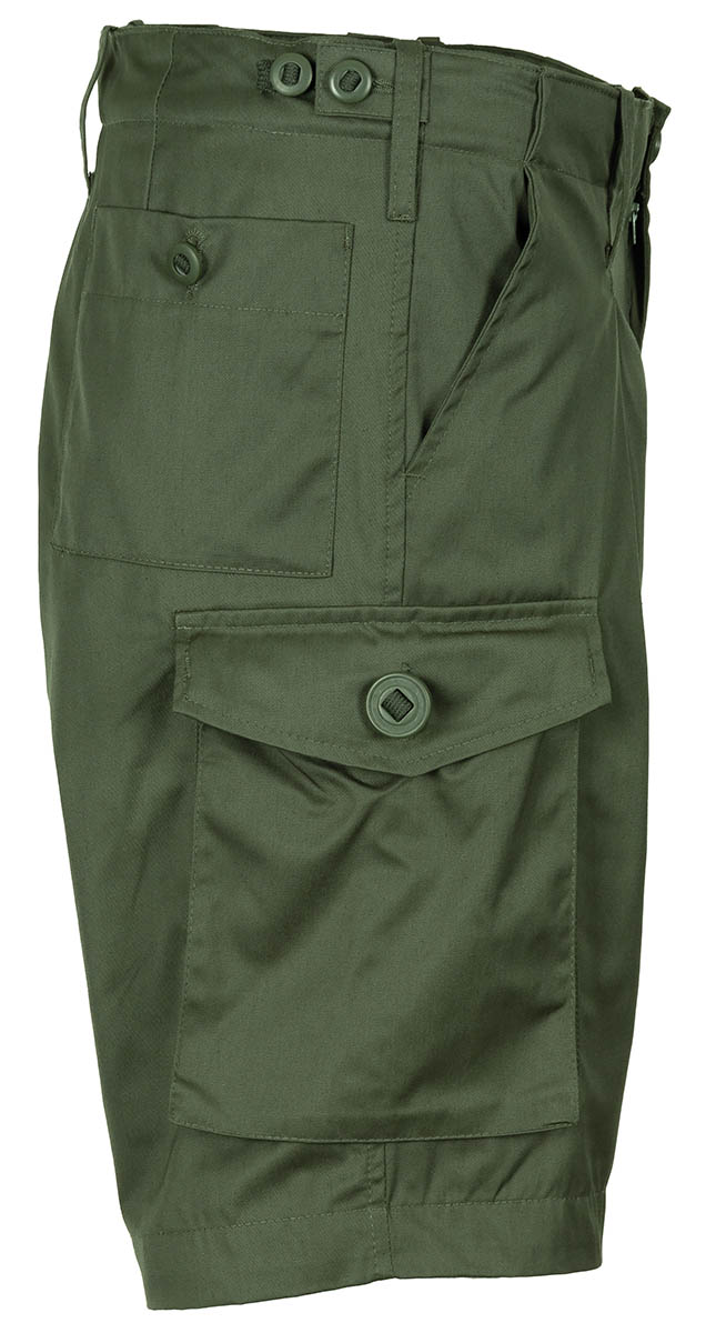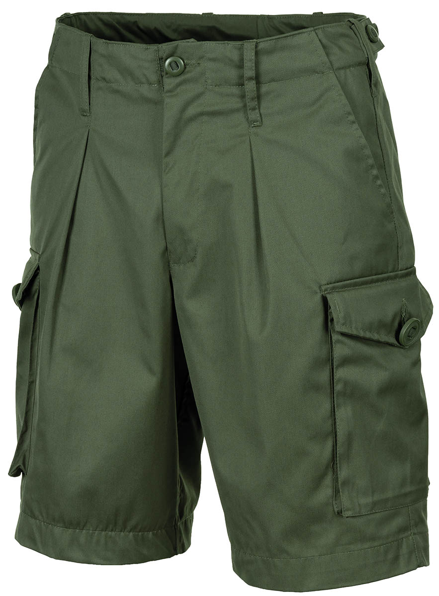 Nachbau der britischen Bermuda verdeckter Front-Reissverschluss 2 seitliche Einschubtaschen 1 Gesässtasche mit Knopf 2 seitlich aufgesetzte Beintaschen mit Patte und Knopf zweifach verstellbare Taillenweite: aussen durch Knöpfe innen durch Stoffband extra lange Gürtelschlaufen (ca. 9 cm) alle Knöpfe mit Stoffband angenäht