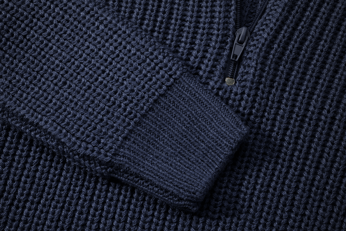 zeitloser, unkomplizierter Kinderpullover / elastisches Strick-Material / hochschließender, dicker Kragen mit Reißverschluss / Strickbündchen an Ärmel- und Bundabschluss