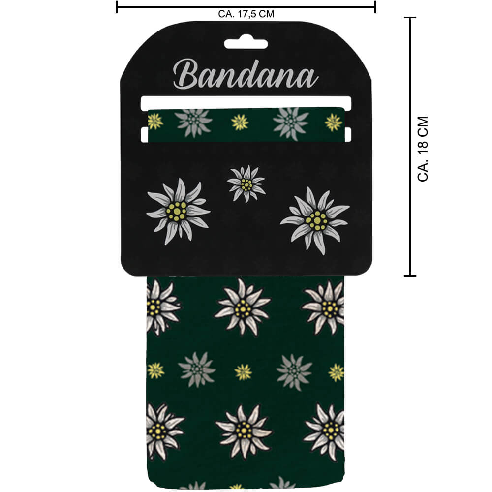 klassisches Bandana mit Edelweiss Muster grün Material: 100 % Baumwolle
