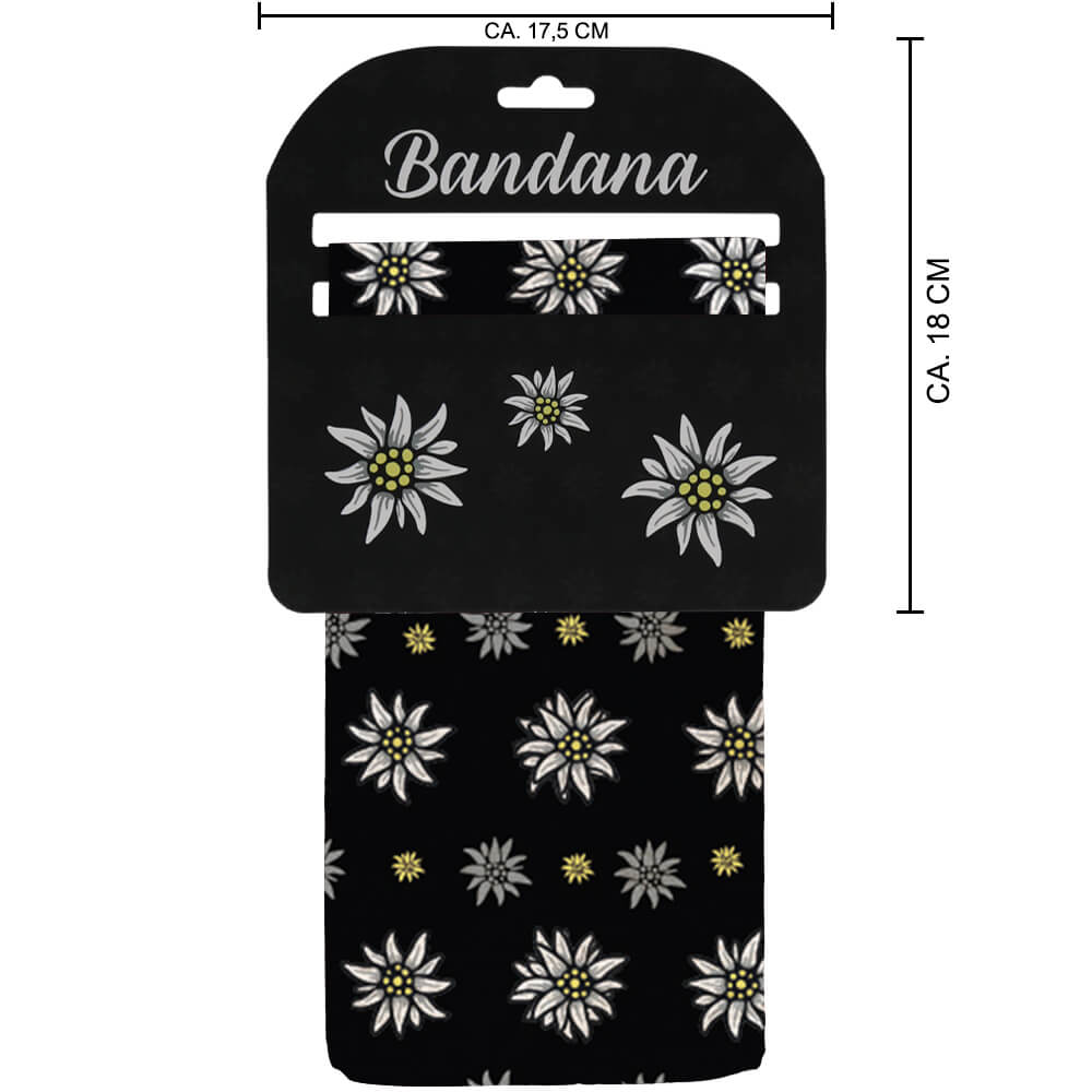 klassisches Bandana mit Edelweiss Muster schwarz Material: 100 % Baumwolle