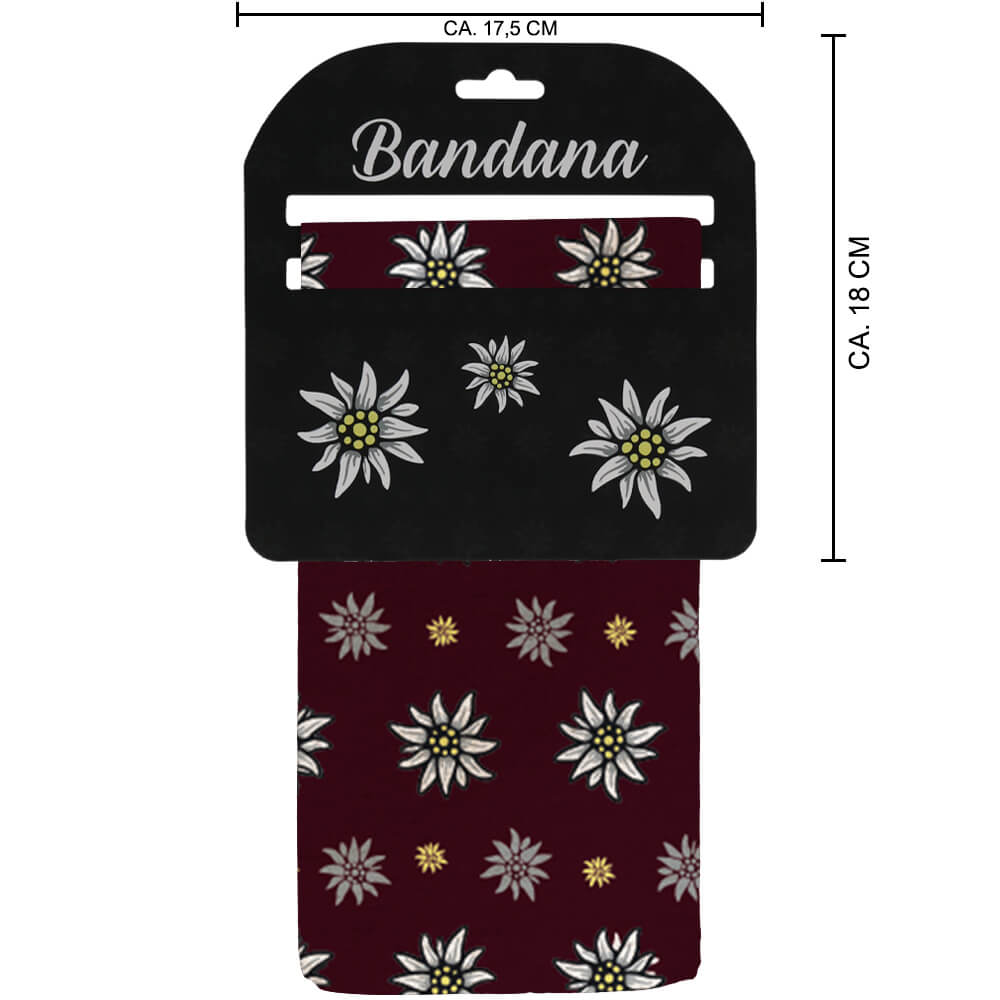 klassisches Bandana mit Edelweiss Muster bordeaux Material: 100 % Baumwolle