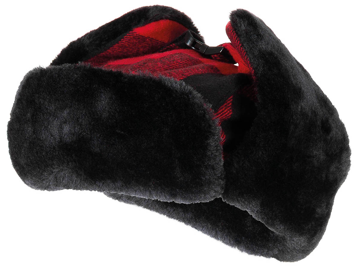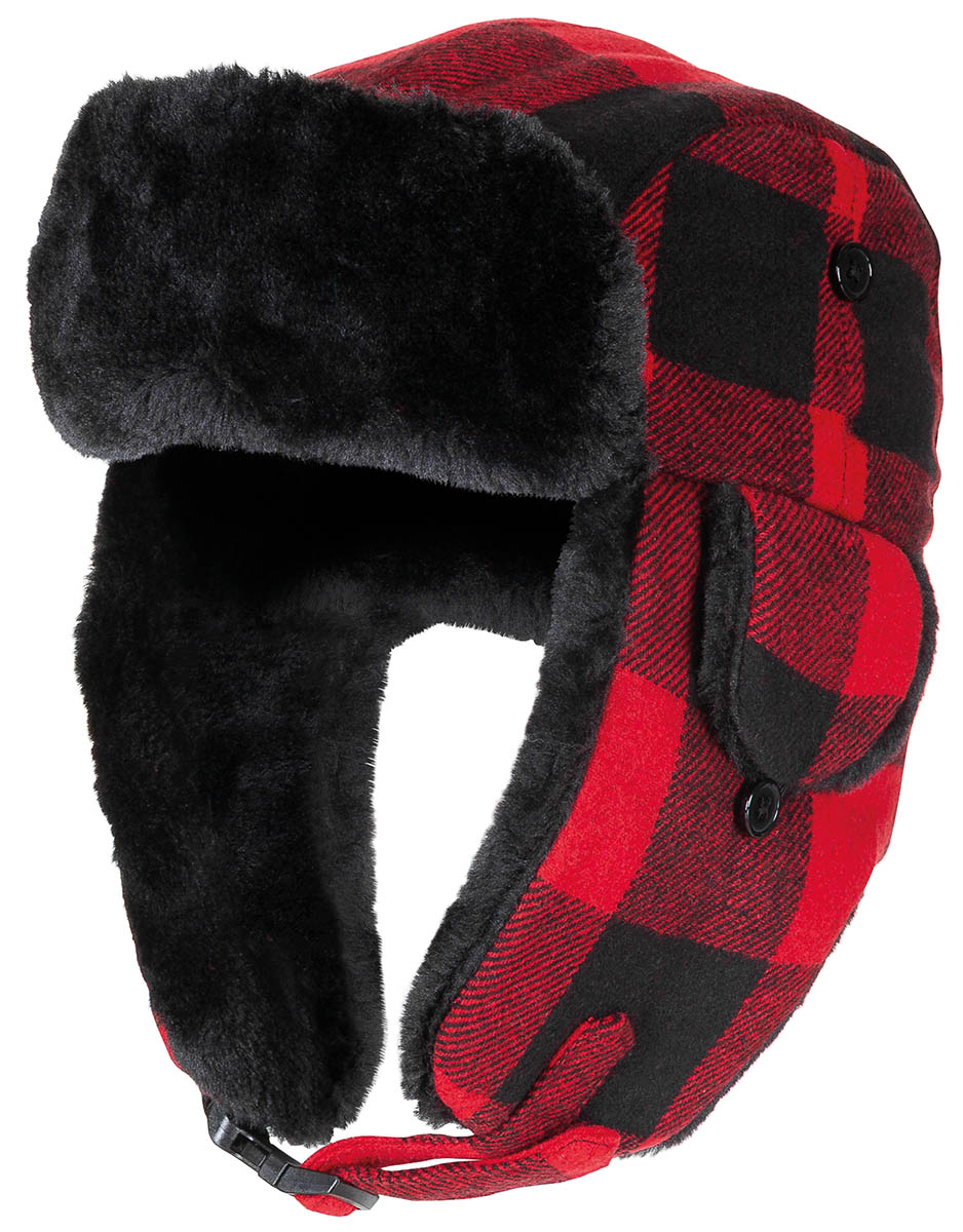 Holzfällermütze mit Fell, rot-schwarz