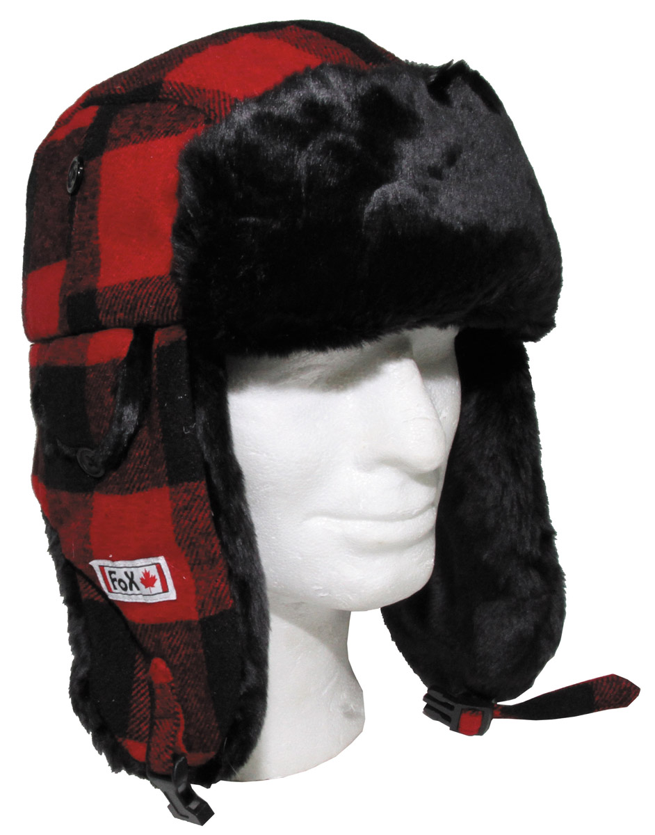 Produktinformationen "Holzfällermütze mit Fell, rot-schwarz"