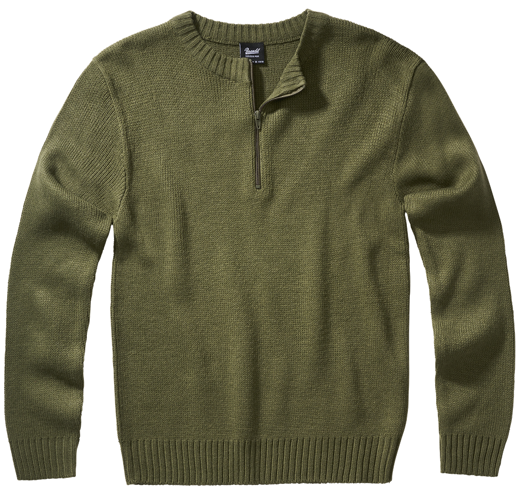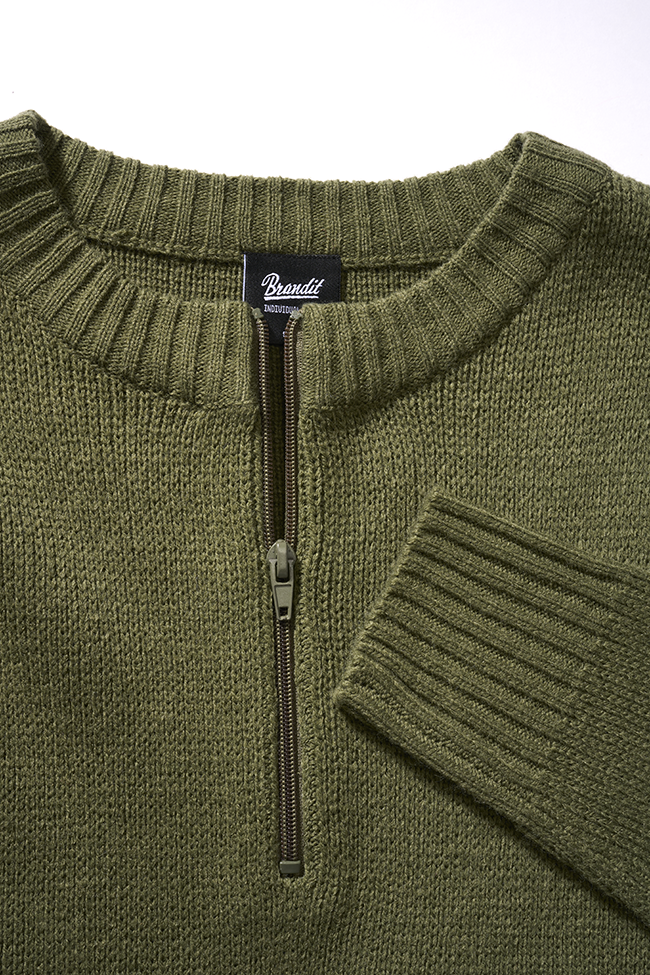 zeitloser Rundhalspullover mit Reißverschluss / Design nach Vorbild der Schweizer Armee / weiches, angenehmes Tragegefühl ohne Kratzen / Strickbündchen an Ärmeln und Saum