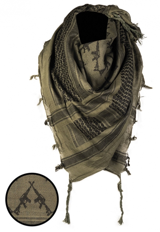 100% Baumwolle Masse: 110 x 110 cm - multifunktionelles Ausrüstungsstück - einsetzbar als Schal, Gesichtstarnung oder Kopftuch - modische Version mit ′Gewehr′