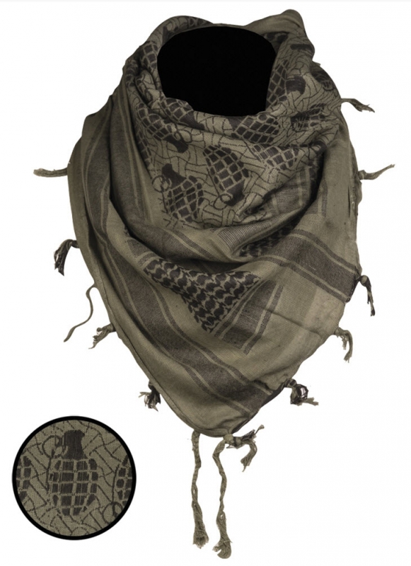 100% Baumwolle Masse: 110 x 110 cm - multifunktionelles Ausrüstungsstück - einsetzbar als Schal, Gesichtstarnung oder Kopftuch - modische Version mit ′Handgranate′