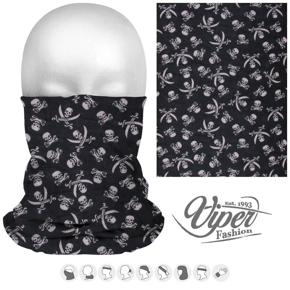 Mehrzweckschal 9 in 1, schwarz weiss "Totenkopf mit Schwertern"