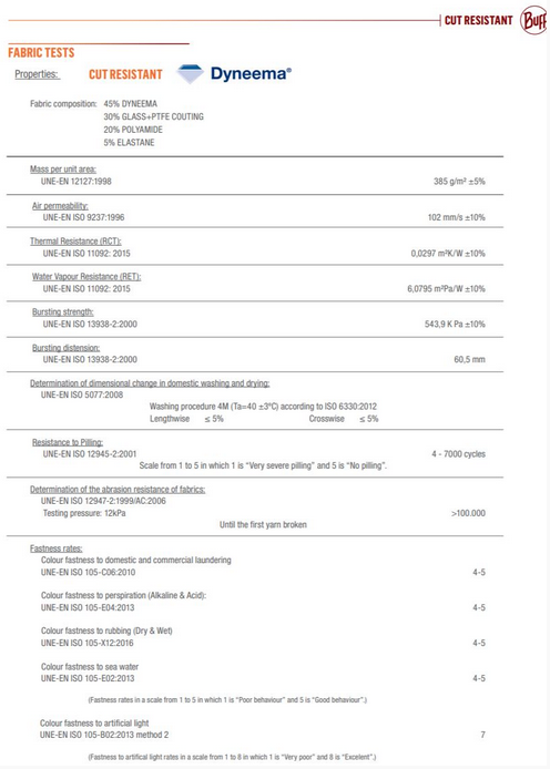 Zusammensetzung: Hauptfabrik: 95% Recyceltes Polyester 5% Elastan Innenfutter: 45% Polyethylen Dyneema® 30% Glasfaser + PTFE-Beschichtung 20% Polyamid 5% Elastan