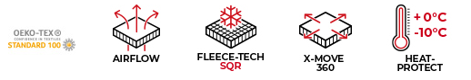 - Zwei-Material-Konstruktion aus FLEECE TECH SQR und Stretch