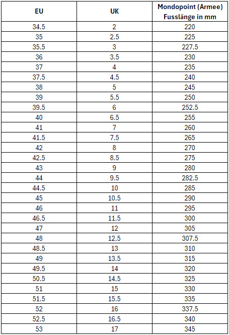 Gewicht: 1 Schuh = ca. 500 gr. (Gr. 8 / Gr. 42)