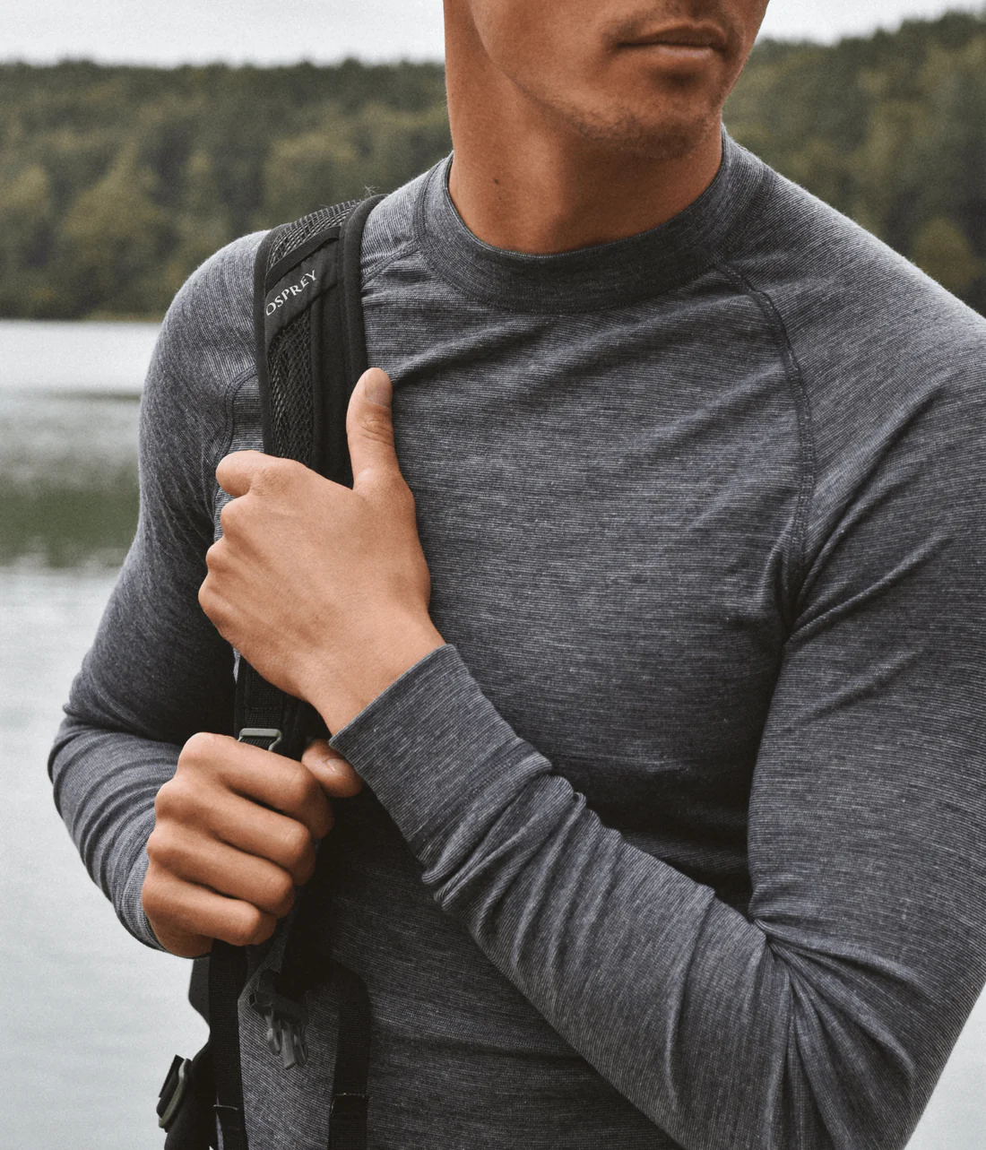 Die MerinoDry-Technologie sorgt dafür, dass Sie sich länger frisch, trocken und warm fühlen. Wir haben eine Doppellage aus funktionellem Polyester auf der Innenseite und natürlicher Merinowolle auf der Außenseite entwickelt, die für eine bessere Atmungsaktivität und zusätzliche Wärme sorgt. Funktionspolyester leitet überschüssige Feuchtigkeit schnell ab, und Merinowolle ist dafür bekannt, dass sie nicht nur wärmt, sondern auch natürliche antibakterielle Eigenschaften besitzt, die vor schlechten Gerüchen schützen.