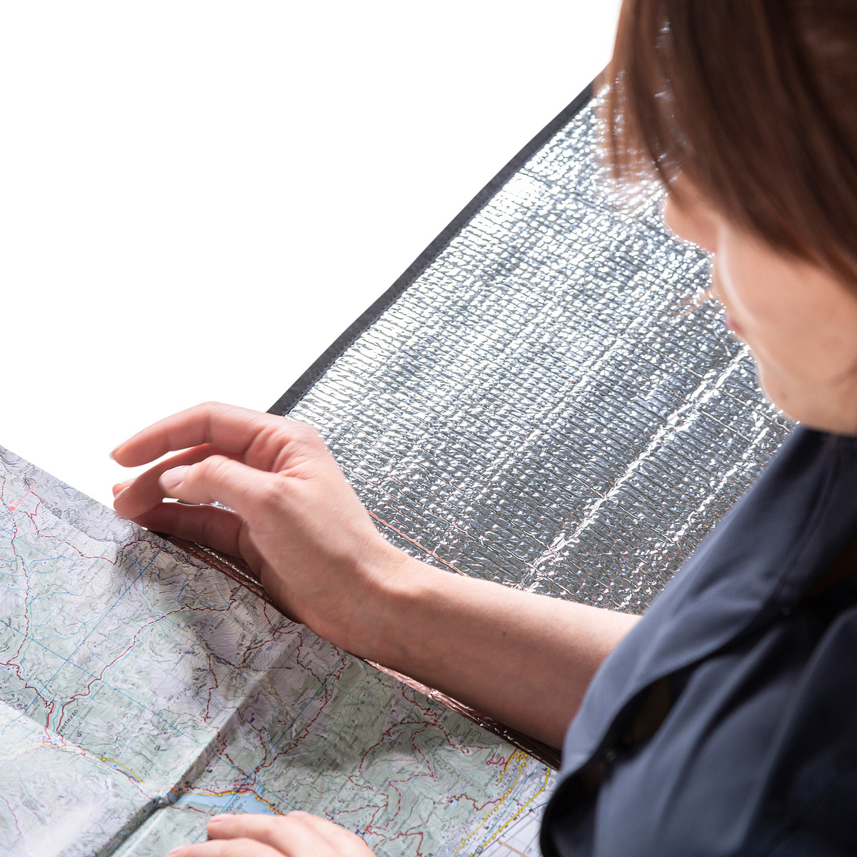 Die Alu Seat Mat wärmt angenehm von unten, denn sie besteht aus mit PE-Schaum kaschierter Aluminiumfolie. Die leichte Matte lässt sich klein zusammenfalten und passt in jeden Rucksack.
