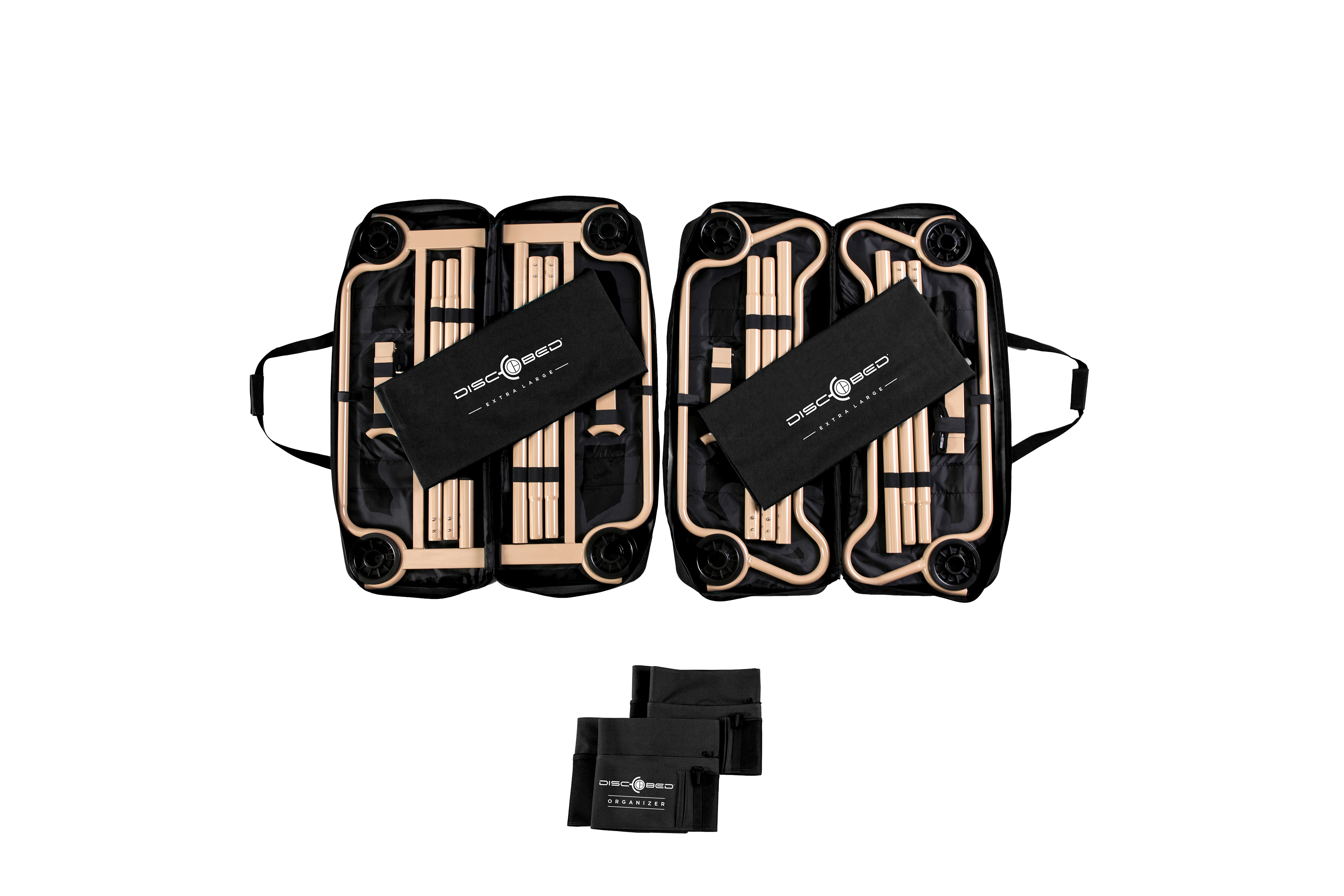 Es ist nicht nur flexibel einsetzbar – ob als Etagenbett, Einzelbetten oder sogar als Sitzbank – es bietet durch die extra breite Liegefläche auch zusätzlichen Liegekomfort. Genießen Sie die Nacht unter den Sternen ohne lästige Querstangen, die Ihnen Rückenschmerzen bereiten; die stabile Matte sorgt für ein angenehmes und bequemes Liegegefühl. In den praktischen Seitentaschen, die direkt an der Matte befestigt werden, können Sie persönliche Gegenstände wie Handy, Brille oder Trinkflasche bequem verstauen und haben jederzeit schnellen Zugriff darauf. So nutzen Sie den Platz im Zelt optimal und halten gleichzeitig Ordnung. Schnell aufgebaut dank des patentierten Disc-Systems eignet sich das Disc-O-Bed perfekt für den Campingurlaub. Sie benötigen keinerlei Werkzeug für Auf- oder Abbau und jedes Bett wird in einer praktischen Tragetasche geliefert für einfachen Transport und Lagerung.